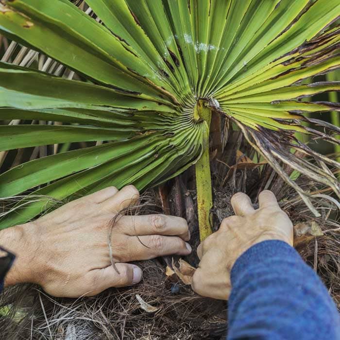 - Nettoyer régulièrement le palmier afin de faciliter la détection précoce d’une attaque.