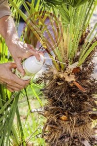 Exemple d’application de Biopalm sur un Chamaerops, pour prévenir toute attaque.